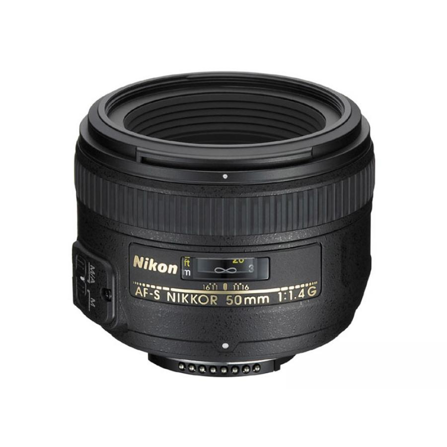 Objectif 50 mm standard avec des optiques de haute qualité et le moteur SWM (Silent Wave Motor) exclusif de Nikon pour un fonctionnement silencieux et rapide. Offre une grande ouverture maximale de f/1.4 qui assure une image très lumineuse dans le viseur et est idéale pour les prises de vue réalisées dans des conditions de faible éclairage ou avec de faibles profondeurs de champ.