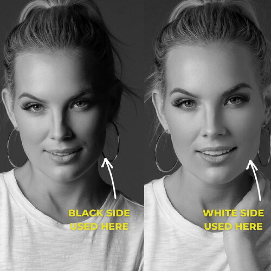De Foldable V-Flat 2.0 is dubbelzijdig in klassiek wit en zwart en is meer dan alleen een plaat schuimkern. Het dient als een veelzijdig hulpmiddel dat licht eenvoudig reflecteert, aftrekt en blokkeert. Perfect voor het markeren van licht en het creëren van uitgeblazen witte achtergronden, het transformeert elke opstelling. Wanneer het niet als lichtmodifier fungeert, gaat het naadloos over in een set-element, dat fungeert als achtergrond of zelfs een draagbare kleedkamer voor modellen.