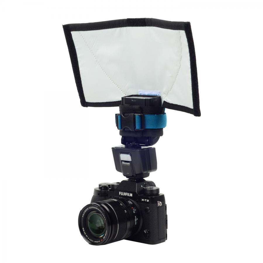 La sangle de fixation intégrée à chaque modificateur FlashBender v3 peut être ajustée pour s'adapter à des flashs aussi petits que 6,75 pouces de circonférence et des flashs aussi grands que 17 pouces. Cette polyvalence signifie que les modificateurs FlashBender v3 conviennent aux petits flashs comme le Nissin i400 ou le Godox TT350S, souvent utilisés avec les petits boîtiers sans miroir d'aujourd'hui, ainsi que les flashs pleine taille tels que le Nissin MG80 Pro professionnel et le Godox AD200. Et, bien sûr, le FlashBender v3 s'adapte aux flashs phares de Canon, Nikon et Sony comme le Canon 600EX II-RT, le Nikon SB-700 AF et le Sony HVL-F60RM.